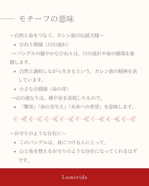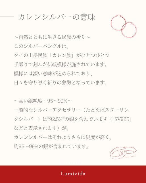 カレンシルバーブレスレットは、タイのカレン族の手によって丁寧に作り上げられた、